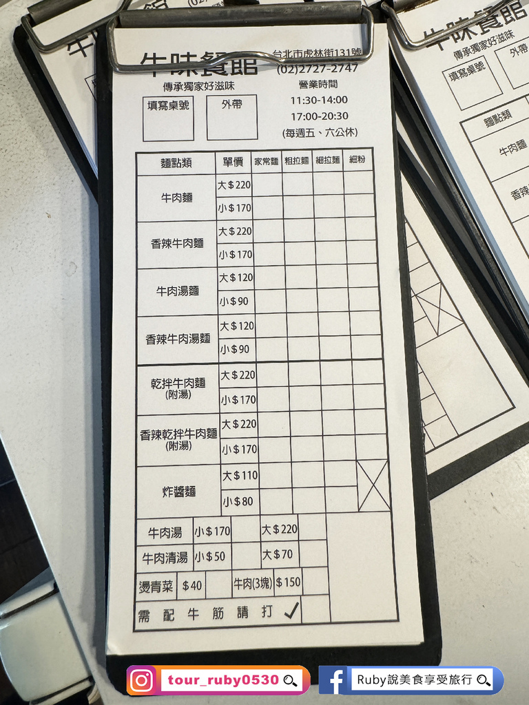 牛筋可以在菜單上打勾,但Ruby打勾了送上來卻沒有牛筋。