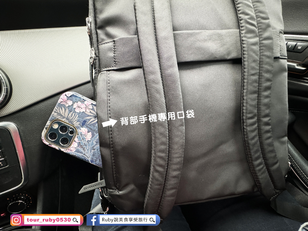 在背包的背部,設有手機專用口袋,方便使用者隨時隨地取用手機。