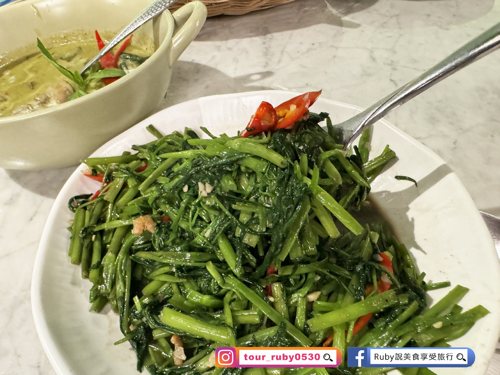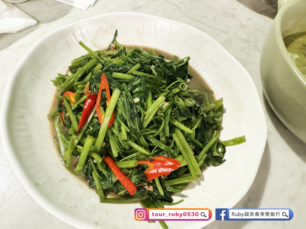 鮮時蔬和香濃的泰式蝦醬,大火快炒,空心菜的口感爽脆鍋氣十足,