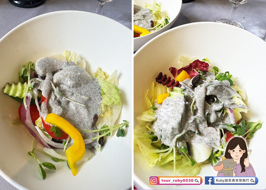 黑芝麻的味道不會過甜,沙拉的蔬菜都新鮮又輕甜,