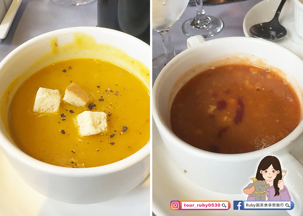 只要點主菜即可,每一道菜均有附上開胃飲品、前菜、一碗湯、