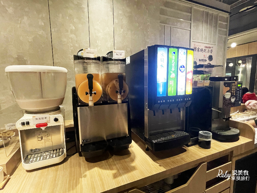 熱咖啡和一些飲料可以選擇,如不喝也有冰開水提供。