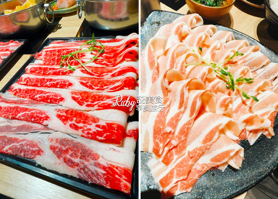 肉的部分我們點了美國雪花牛肉 $448 和帶皮豬五花 $468