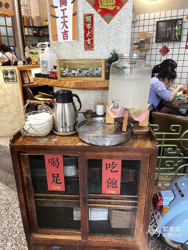 因為不收服務費所以餐具和白開水需要自己拿,RUBY不得不稱讚他們家附贈的檸檬水真的很夠味,