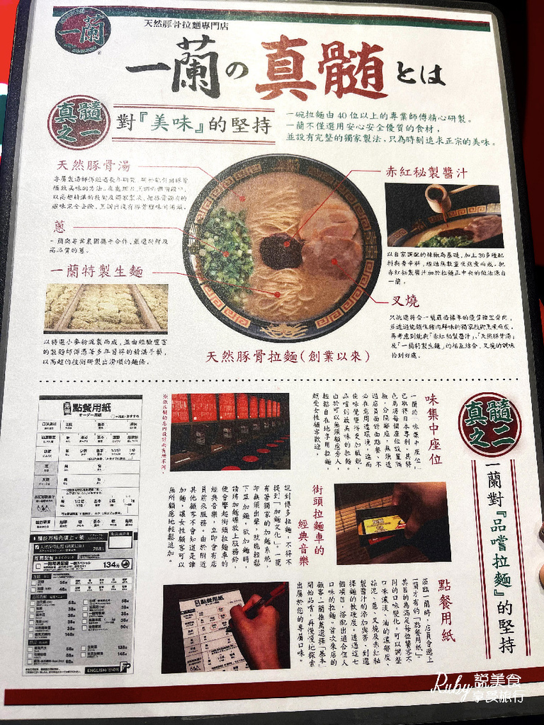 一蘭天然豚骨的湯頭,濃郁因是日本道地湯頭略鹹,麵條是RUBY最愛的細麵,一蘭貼心的就是可以客製化你想要的一碗拉麵。