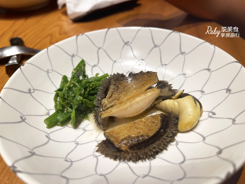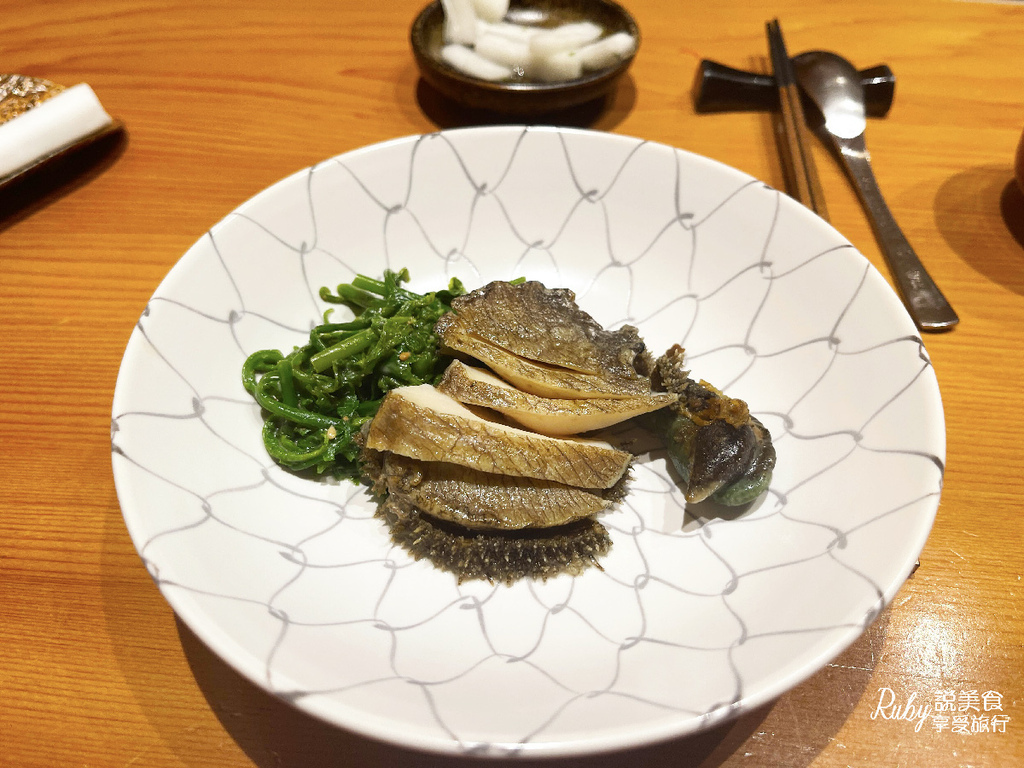 鮑魚的調味剛好不會過鹹乾煎就很好吃了,師傅說生殖腺可以去判斷鮑魚性別,