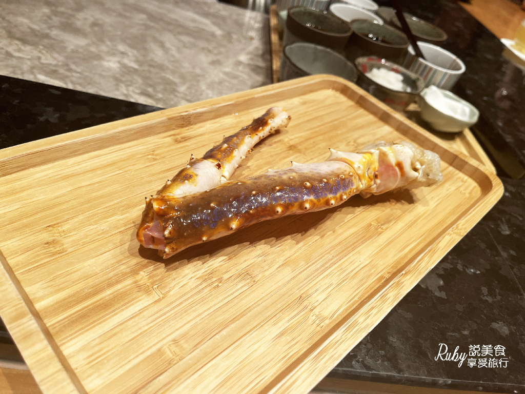 當天的朋友加購了帝王蟹腳( 照片這隻大約是 212g ; 每克7元 ),大約是1484元左右。