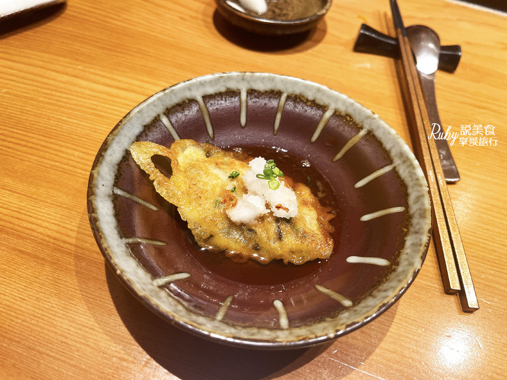 生蠔還沒有煎的時候很大顆,RUBY以為要生吃結果是用天婦羅的方式下去煎後,