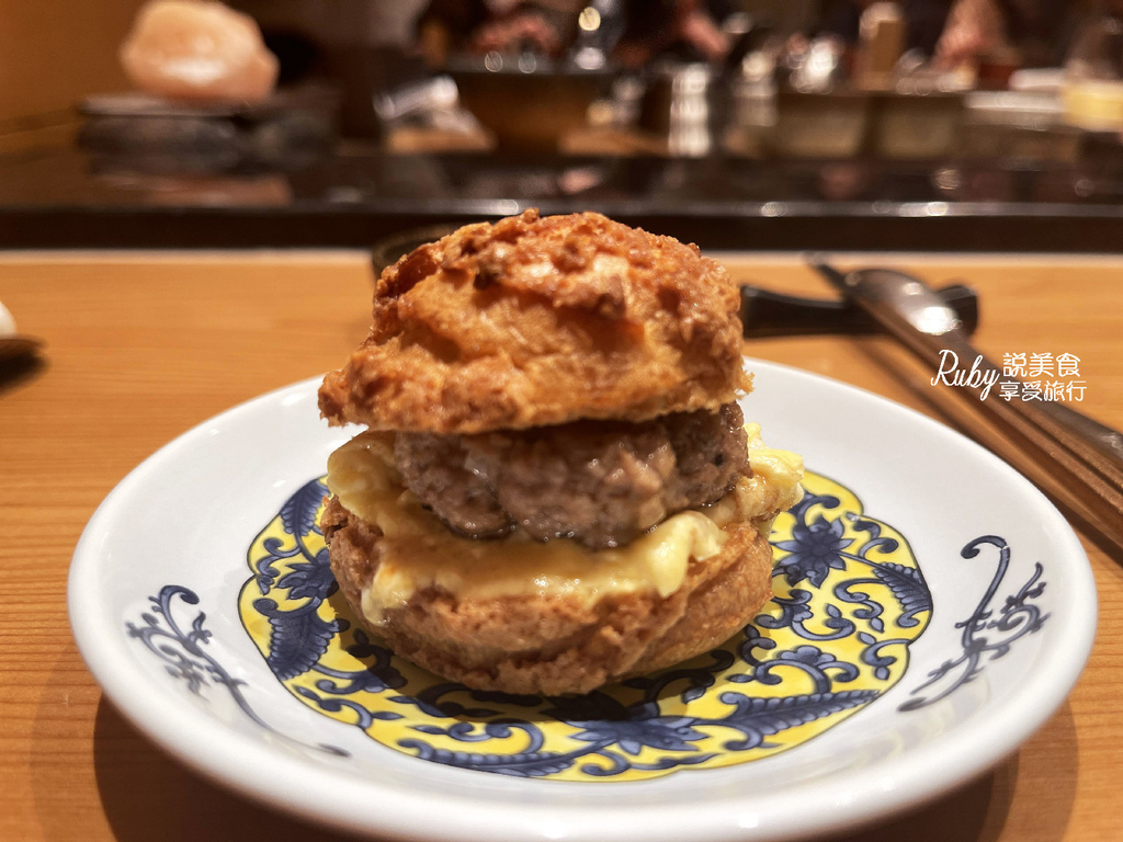 迷你和牛泡芙佐日式歐姆蛋,泡芙是他們自己做的不是買外面現成的,