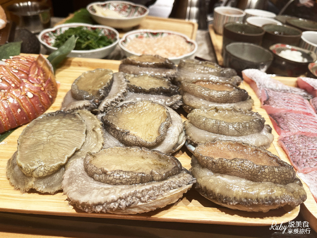 當天有新鮮的鮑魚、龍蝦、紅條魚、干貝和胭脂蝦等,看那個光澤就知道很新鮮。