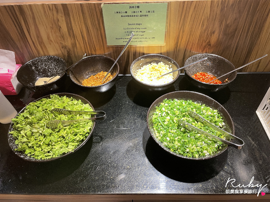 可以去醬料區用調醬,旺角他們家蔥和香菜真的是很敢給滿滿一大碗,