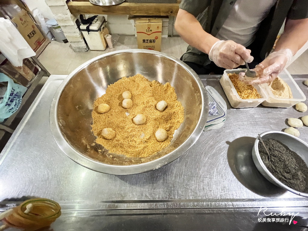 芝麻的香氣很濃郁,花生裡面大部分的店家都是花生加糖粉,但馬叔手工麻糬裡面還咬的到花生的顆粒,