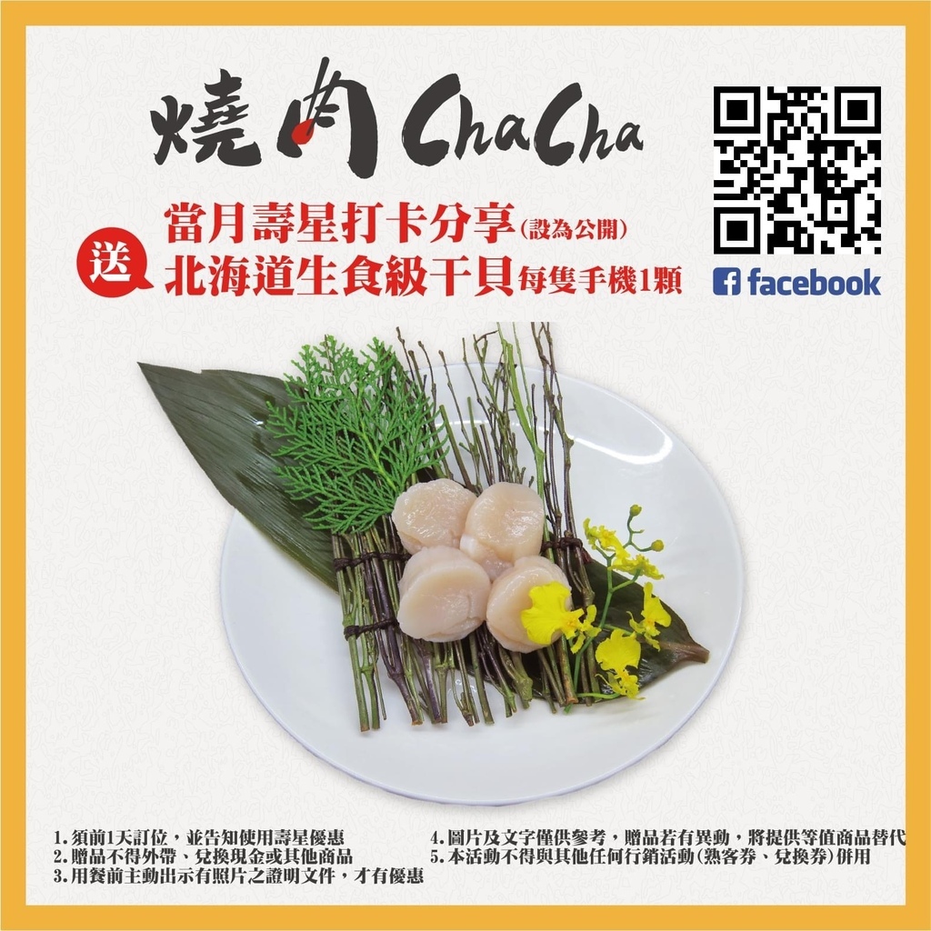 當月壽星打開設定公開有送北海道生食級干貝一顆,於2月底前,單人單筆消費滿500元,