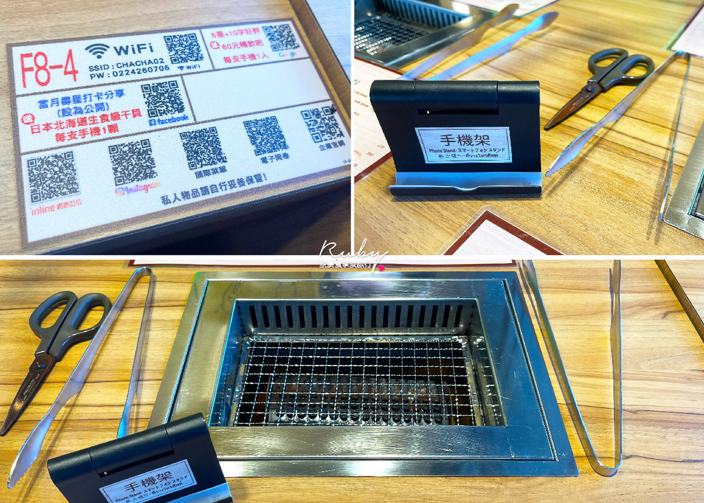 個人的燒肉烤網很可愛,還有手機架可以放手機,邊吃烤肉邊追劇,