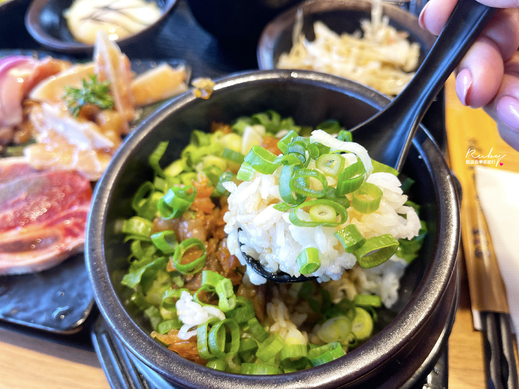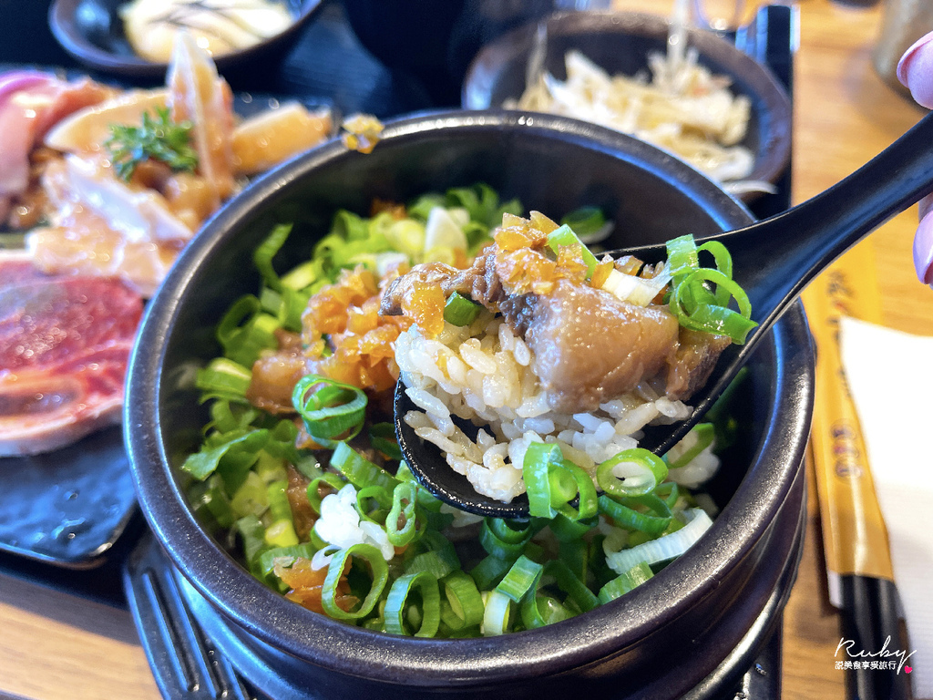 食事則是選了極上CAB安格斯黑牛石鍋拌飯 $120;滿滿的蔥和滷牛肉的碎肉,
