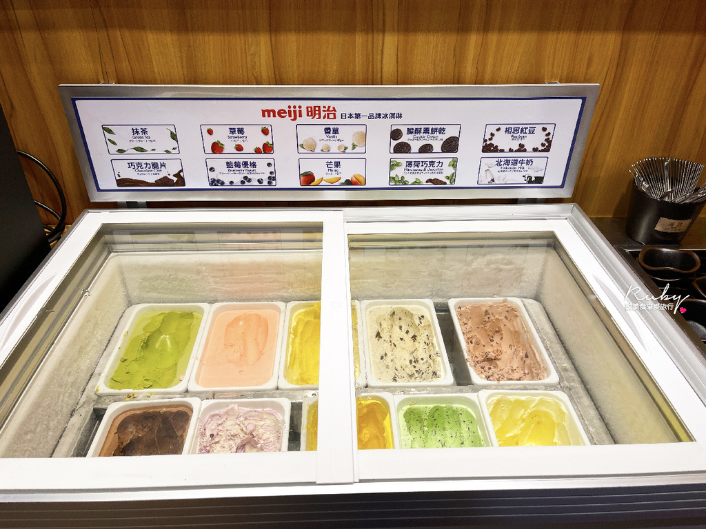 甜點的部分是日本品牌的明治冰淇淋,有10種口味,冰淇淋的清潔算保持的還不錯,