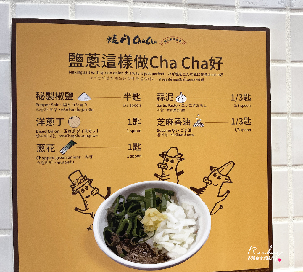 燒肉ChaCha的醬料有部分是由日本空運來台的特調佐料跟醬料,