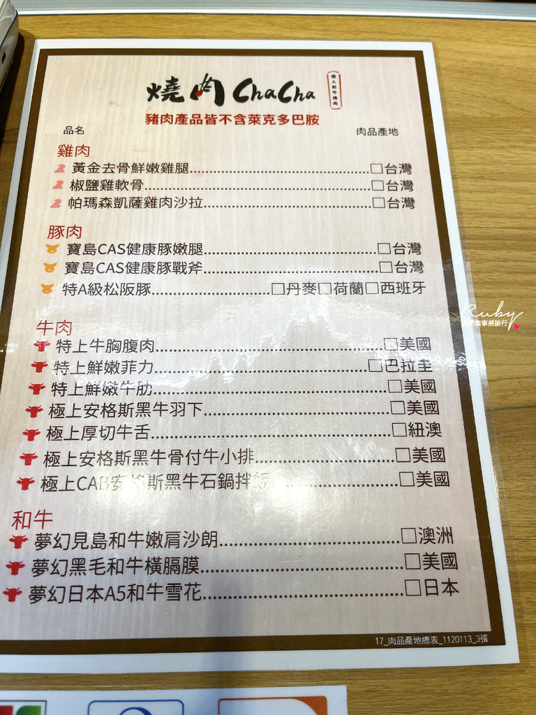 菜單的部分旁邊會有肉品的產地、肉吃起來的口感及建議熟度,都很貼心的告知了;