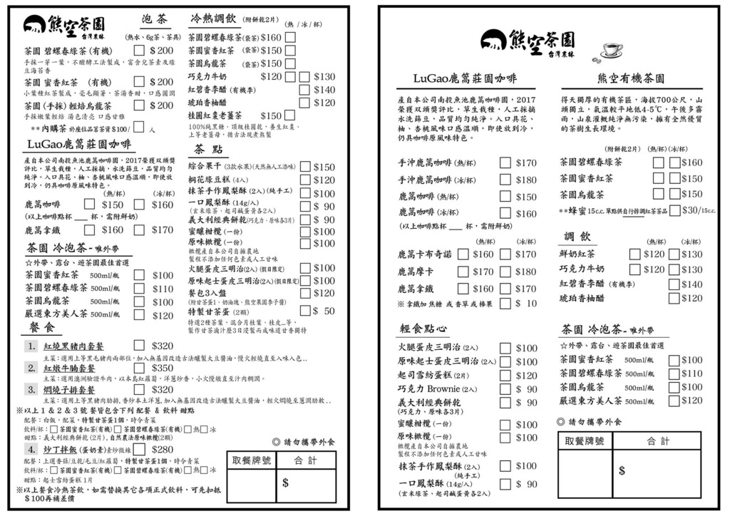 農林熊空茶園入園券 NT100元/人,100公分以下及身障人士出示證件免費入園,