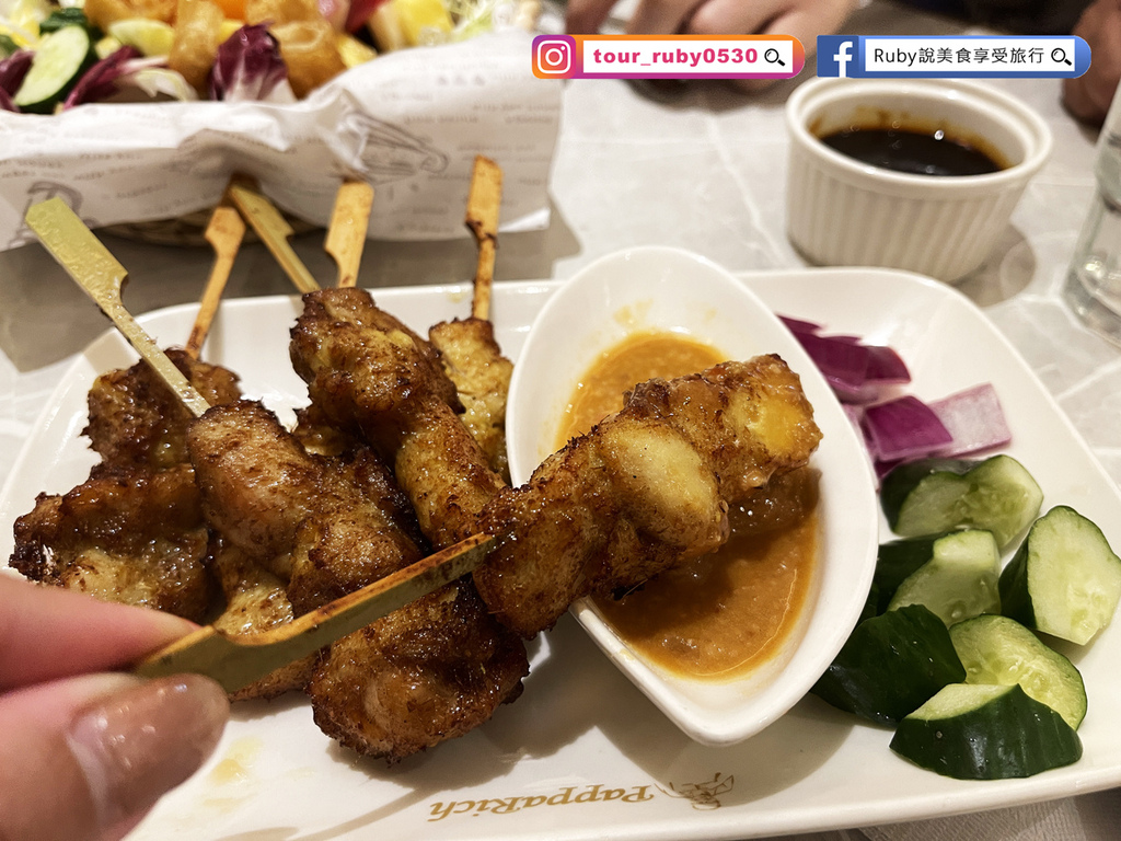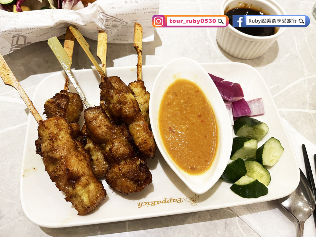 通常沙嗲都是先把肉用醬汁先醃過再火烤,雞肉串本身的香料味道有滿重的,