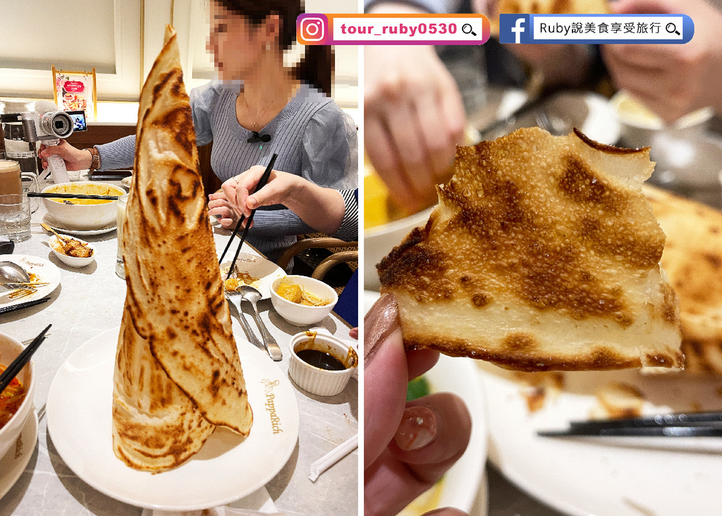 薄如面紙的紙巾印度捲餅,一上桌尖尖高高的麵餅皮,表皮薄脆有奶油的香氣,