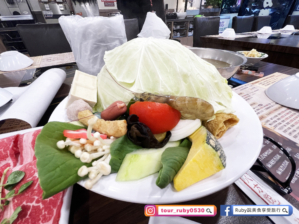 菜盤可選擇蔬菜盤或是火鍋料盤,再選湯底後再選肉片。