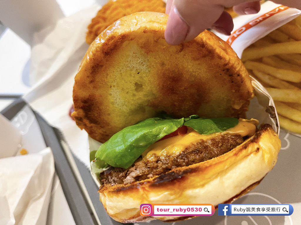 與酥脆的麵包完美的融合在整個漢堡裡面,不會有一般漢堡排乾巴巴的口感。