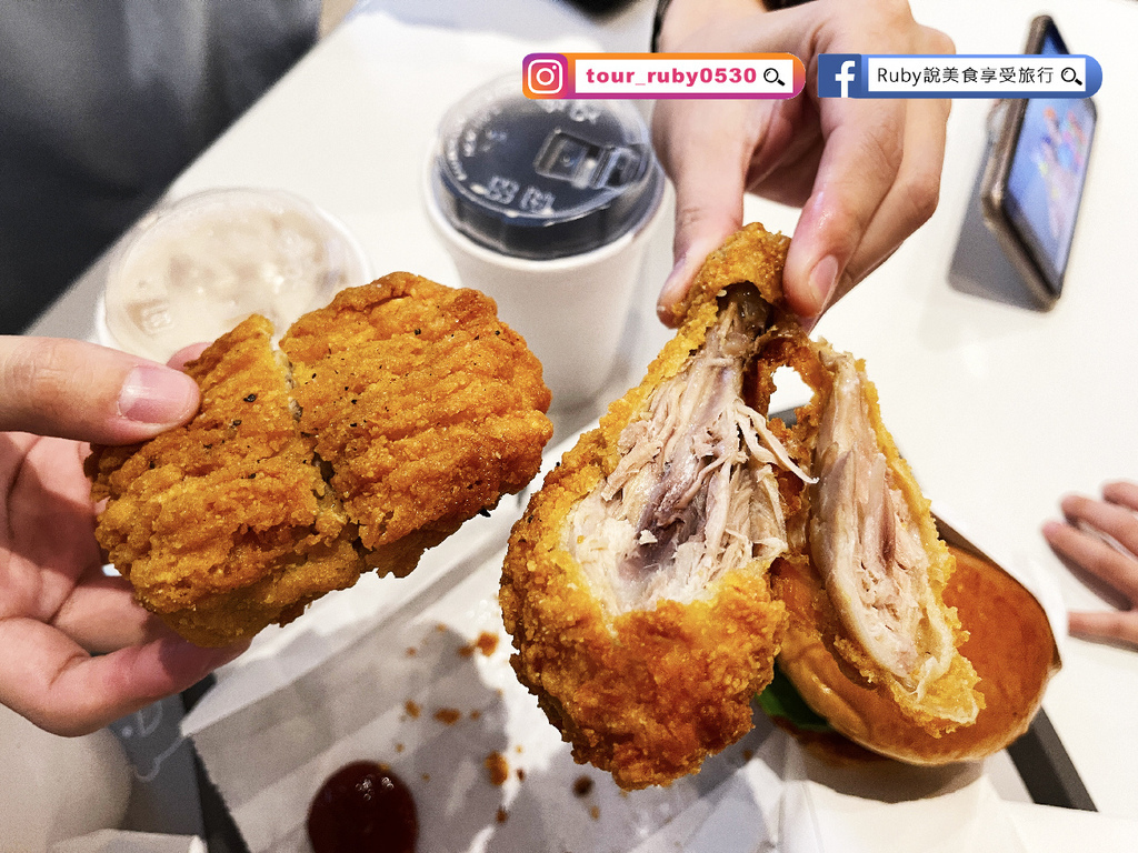 Hang Out Burger的炸雞,金黃酥脆的炸雞,原本Ruby想要剝開來,